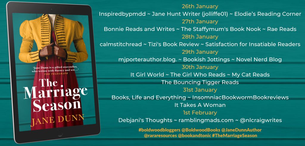 3 thoughts on “Today, it’s my turn on the #blogtour for Jane Dunn’s new historical romance, The Marriage Season. (There’s a lot of horses in this, so yes, I loved it:)”