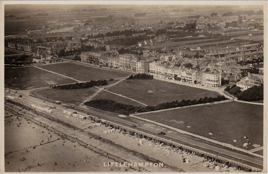 Aerial of Littlehampton around the time of the books. Beach Hotel is on the common towards the left